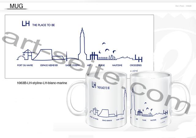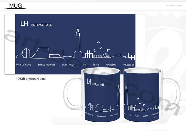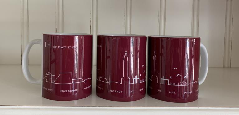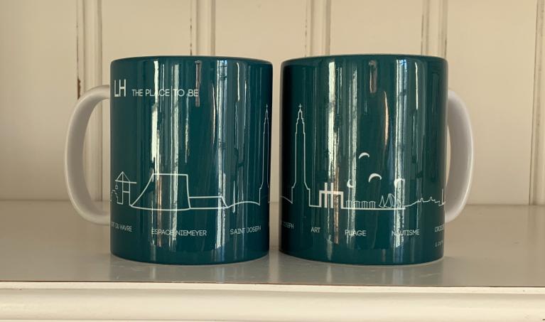 Mugs, tasses expresso, graphismes, tableaux, le Havre...